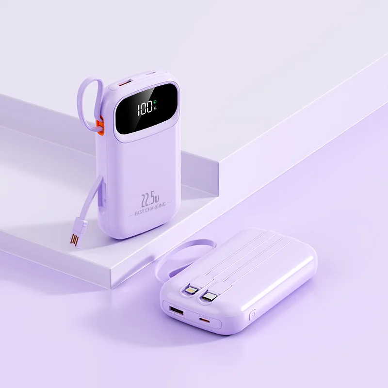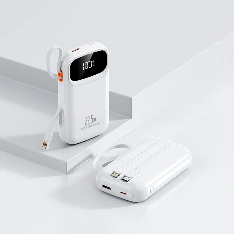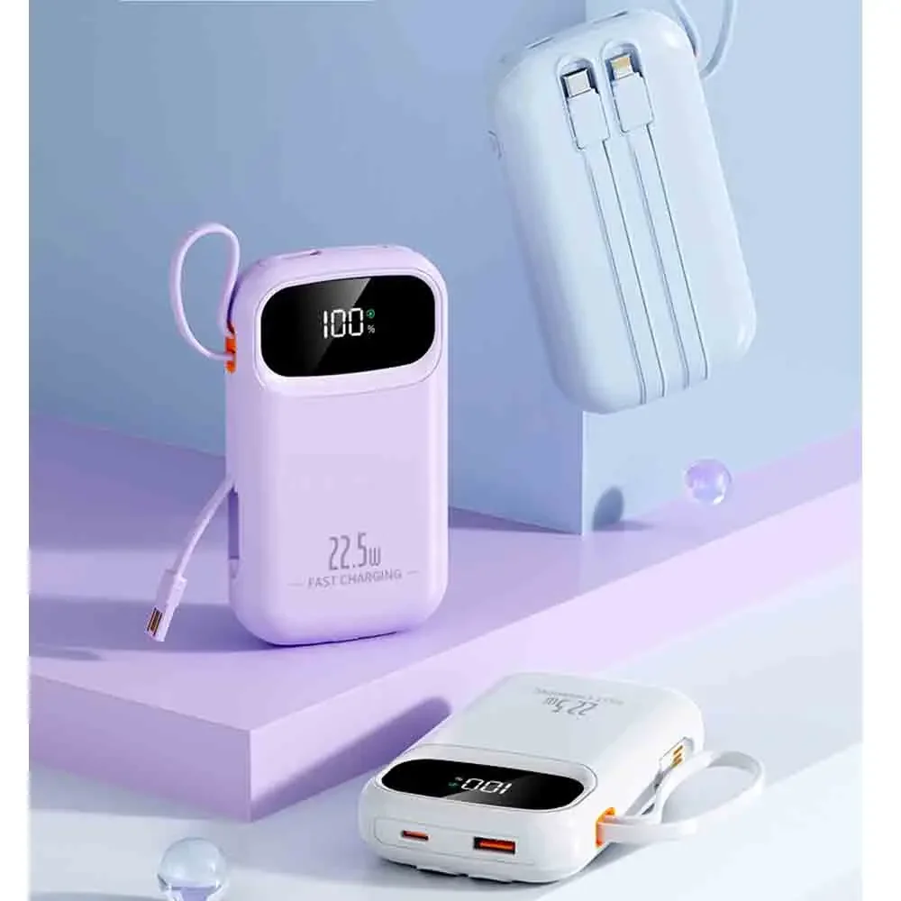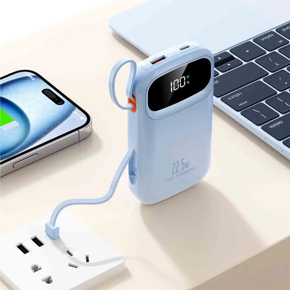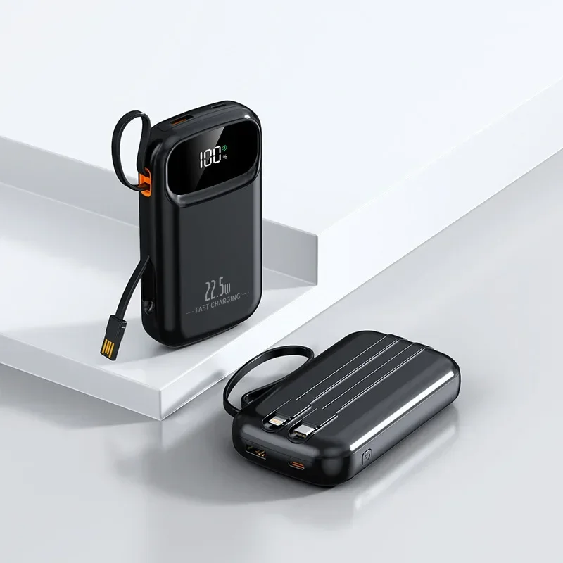 20000mAh Power Bank Built-In Retractable USB-C Cable compatible for Smartphones 22.5W Fast Charging Movable Charger